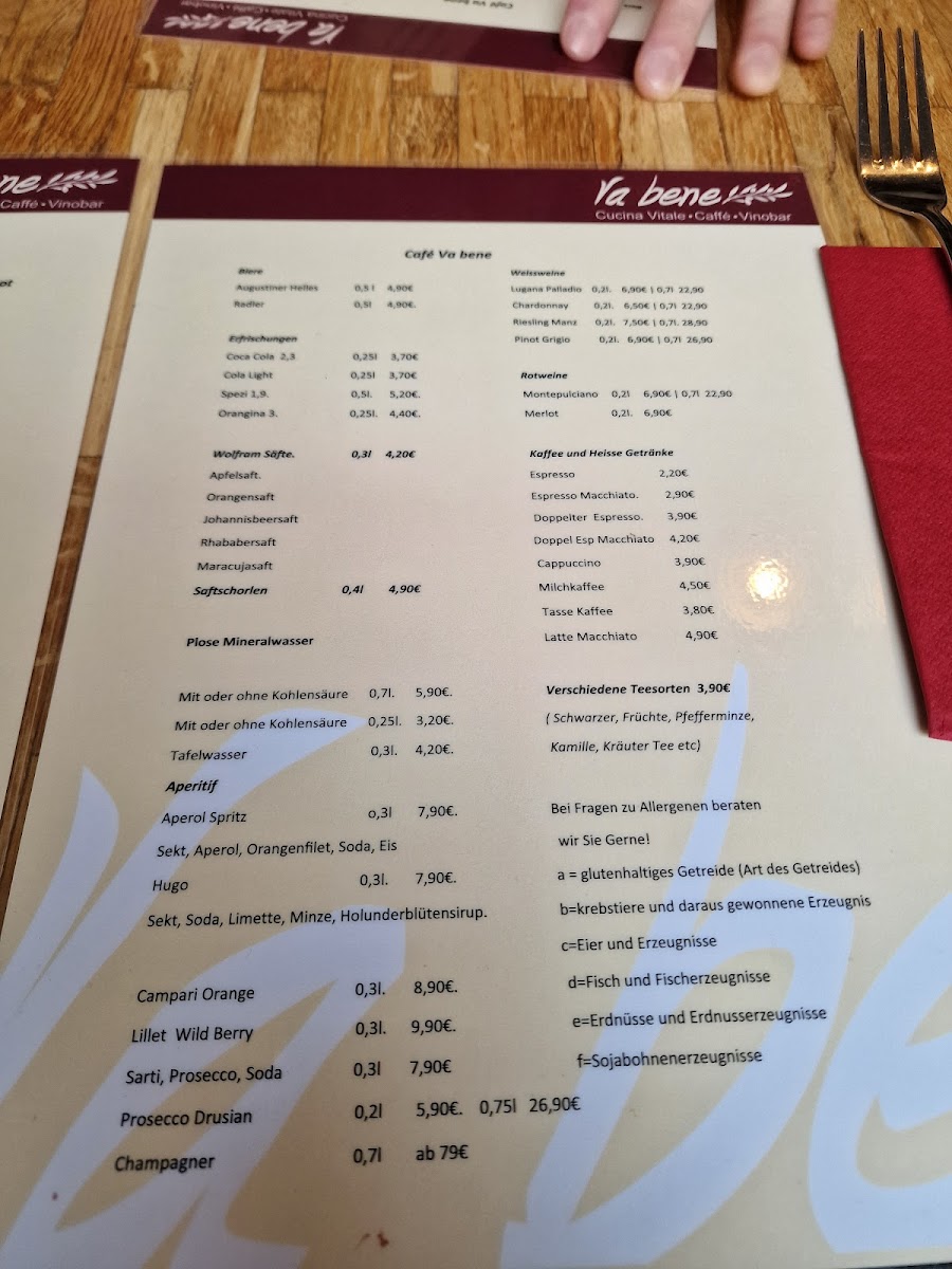 Welcome to Cafe Va Bene, a delightful gem nestled in the heart of Munich at Schleibingerstraße 11. This charming eatery offers a menu that celebrates the essence of Italian cuisine, expertly infused with local charm. Guests rave about the scrumptious pasta dishes and the authentic pork schnitzel, both praised for their generous portions and vibrant flavors. The atmosphere is warm and inviting, making it a perfect spot whether you're starting your day or enjoying a leisurely lunch.